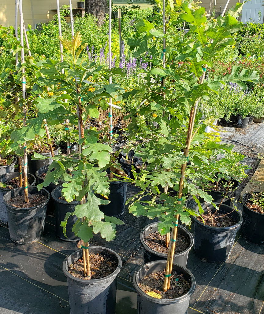 Bur Oak is moderately fast growing. Once established, it can grow 12-20 inches a year. Best growth occurs in deeper soils. Bur Oak’s strong wood makes its branches resistant to wind and ice damage. Its corky bark protects it from sunscald. Bur Oak develops large taproot and is drought-tolerant once established. It is also oak wilt resistant but like many oaks, it can be sensitive to root zone disturbance caused by construction.